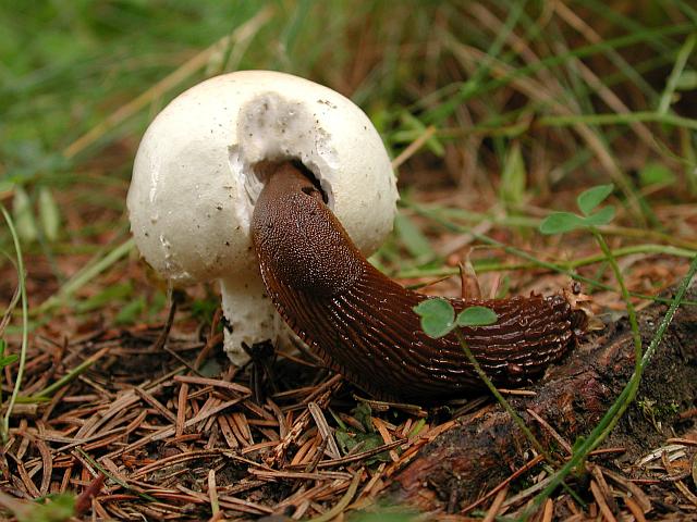Fressen und gefressen werden: ein Champignon als Nahrungsquelle.