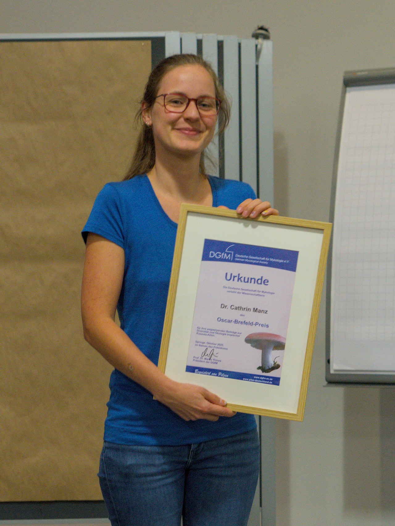Cathrin Manz hat im Arbeitskreis Mykologie im Fachbereich Biowissenschaften der Goethe-Universität Frankfurt am Main im Jahr 2025 eine Promotion mit dem Titel “Diversity and ecology of ectomycorrhizal Russula species in the tropics” abgeschlossen. Täublinge (Russula spp.) sind die zweitgrößte Gattung der Großpilze und unverzichtbare Ektomykorrhiza-Partner in vielen Wäldern weltweit. Wie wir durch metabarcoding-Daten wissen, gibt es insbesondere in den Tropen noch sehr viele bisher unbekannte Arten und systematische Untergruppen in dieser Gattung.