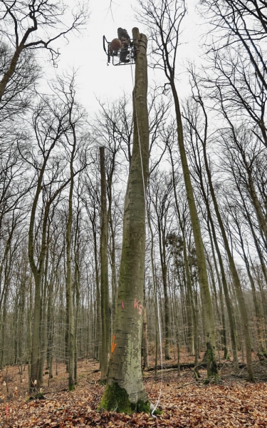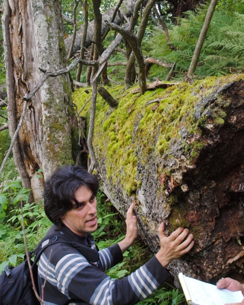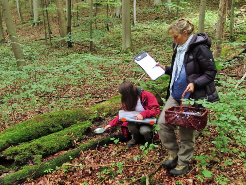 Hier werden Erstbesiedler von manipulierten Baumstämmen im Rahmen des BioHolz-Projekts des Nationalparks Bayerischer Wald untersucht.