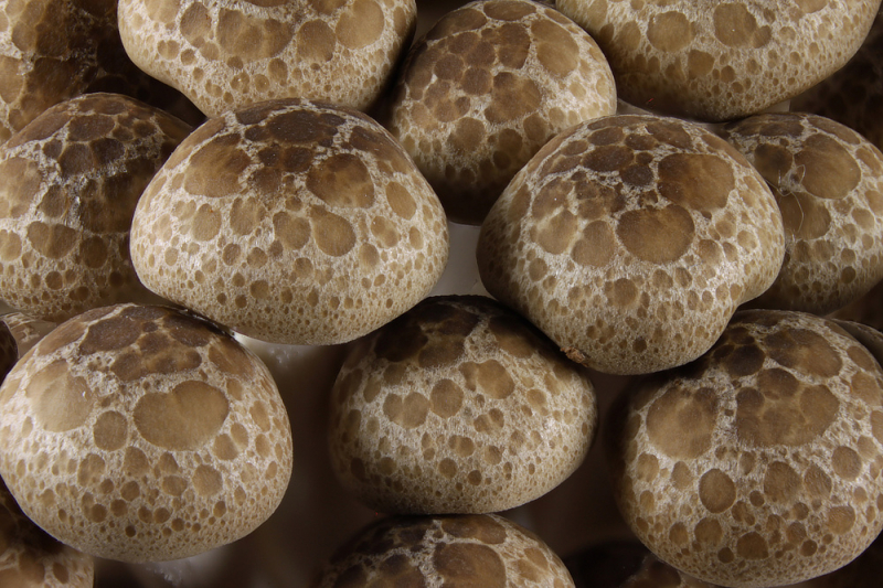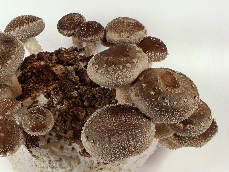 Substratblock mit fruktifizierendem Shiitake (Lentinula edodes)