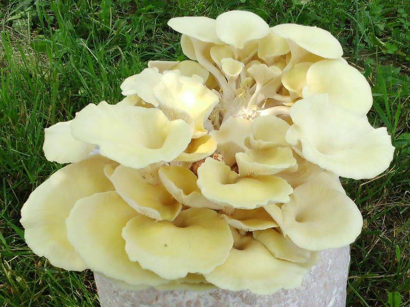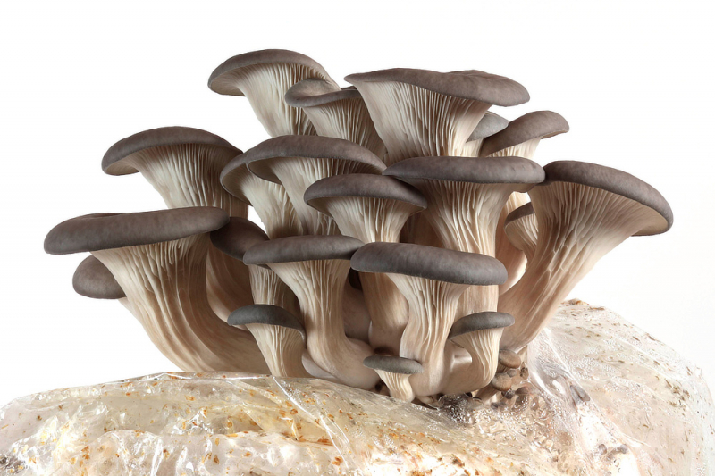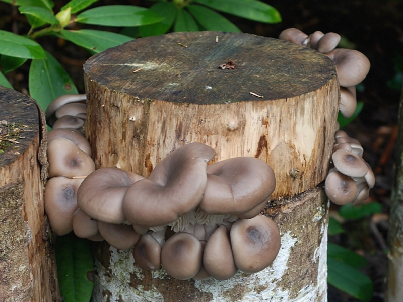 Büschelig wachsende Fruchtkörper des Taubenblauen Seitlings
