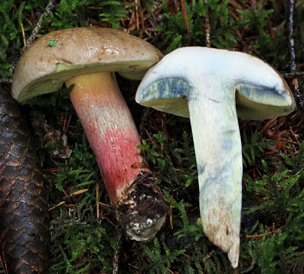 Alle nötigen Merkmale des Fruchtkörpers sichtbar: Caloboletus calopus, der Schönfußröhrling