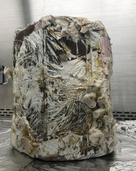 Ein Stuhl aus Myzelium nach 2-wöchigem Wachstum