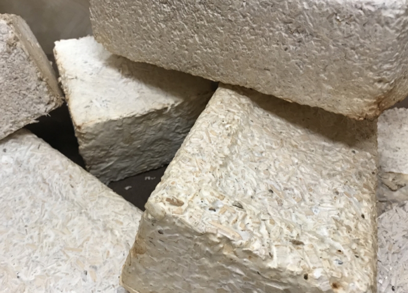 Ziegelsteine, die im Rahmen des Myko-Architektur-Projekts aus Myzel, Hofabfällen und Holzspänen hergestellt werden