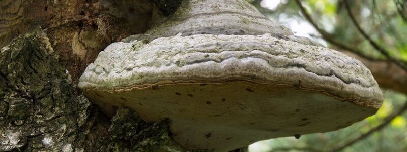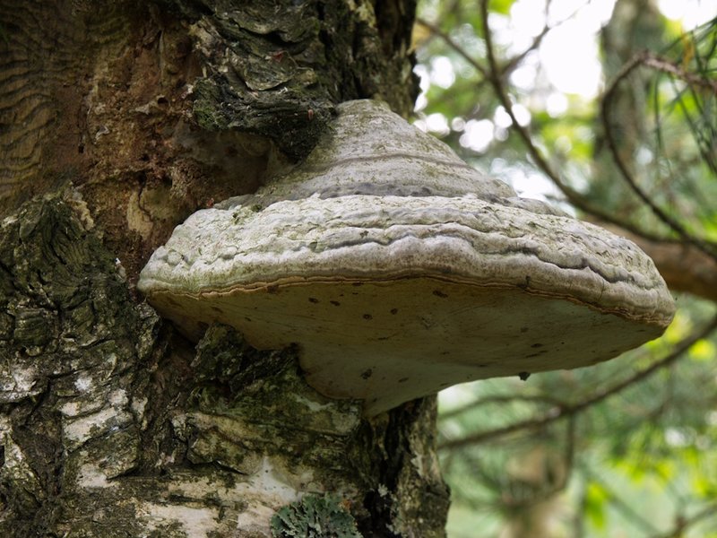 Konsolenartiger Fruchtkörper des Zunderschwamms am Stamm einer Moorbirke