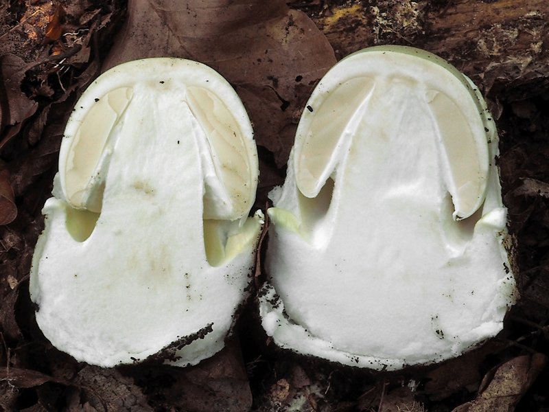 Längsschnitt durch einen jungen Grünen Knollenblätterpilz